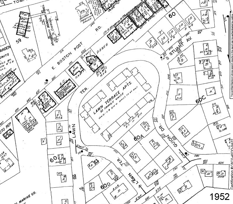 Lawn Terrace Apartments, owned by Lawn Terrace Owners Corporation, consist of 51 individually owned garden-style apartments in the Rye Neck section of Mamaroneck, located on 2.35 acres of land in Westchester County, just north of New York City.